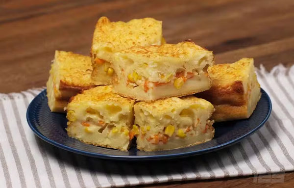 - Adicione 1 cenoura ralada, 1 lata de milho-verde e 1 xícara de queijo muçarela ralado.